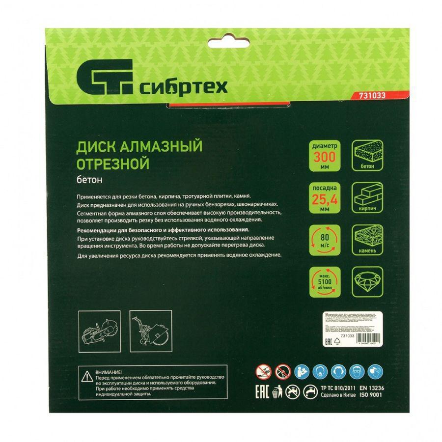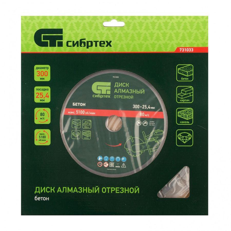 Диск алмазный по бет./кирп./кам. Сибртех 731033 d=300мм d(посад.)=25.4мм (угловые шлифмашины) (упак.:1шт)