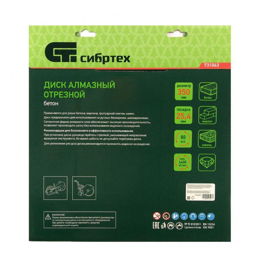 Диск алмазный по бет./кирп./кам. Сибртех 731043 d=350мм d(посад.)=25.4мм (угловые шлифмашины) (упак.:1шт)