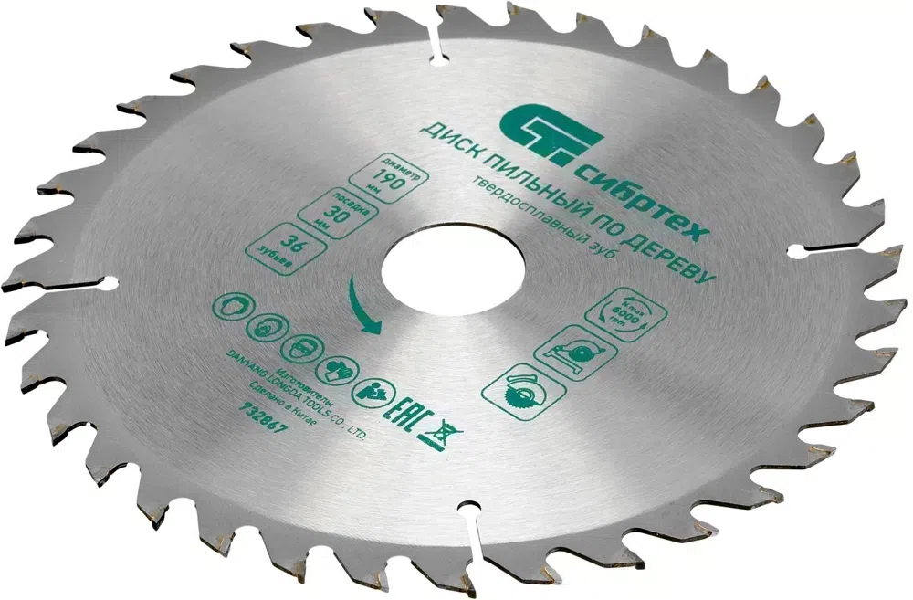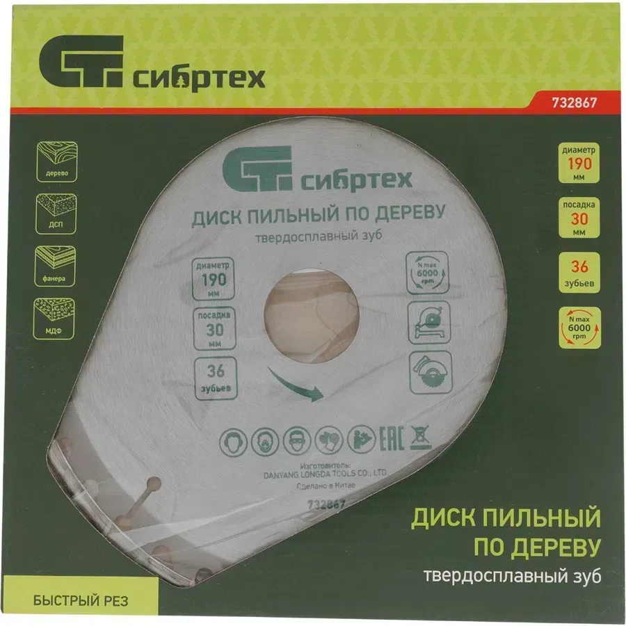 Диск пильный по дер. Сибртех 732867 d=190мм d(посад.)=30мм (циркулярные пилы) (упак.:1шт)