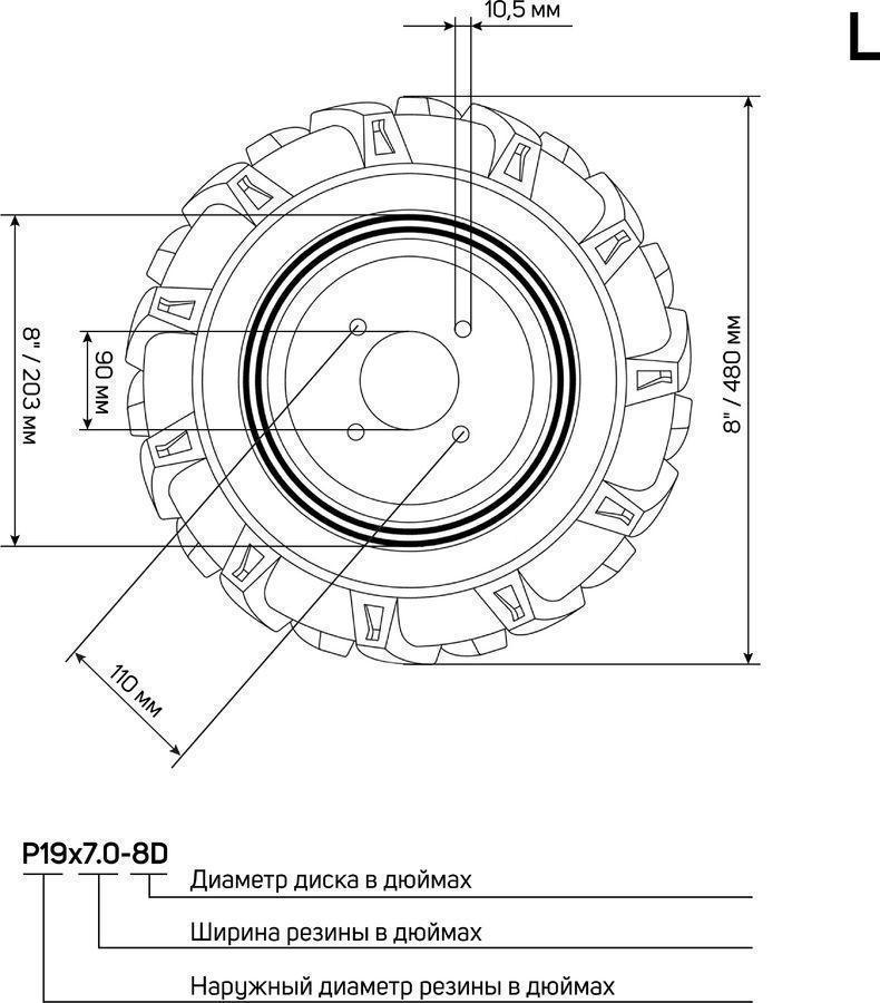 Колесо для мотоблоков Patriot P19x7.0-8D-1 Extreme левое для Урал/Урал М (490001280)