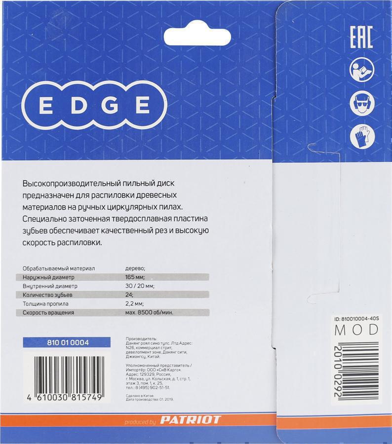 | Описание | Диск пильный EDGE by PATRIOT 810010004 предназначен для циркулярной пилы. Используется для распила изделий из древесины. Зубья оснастки оснащены твердосплавными напайками и имеют специальную заточку для быстрой распиловки заготовок. |