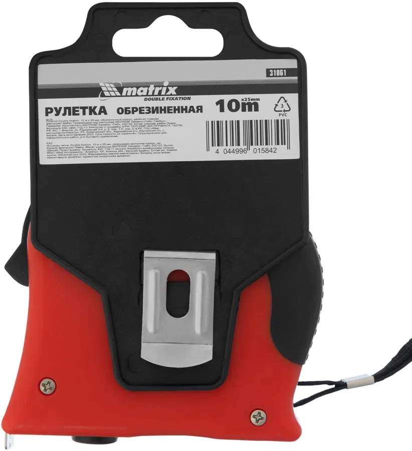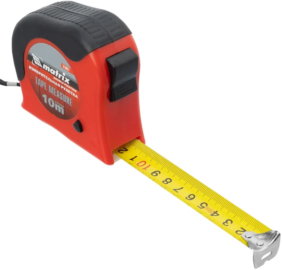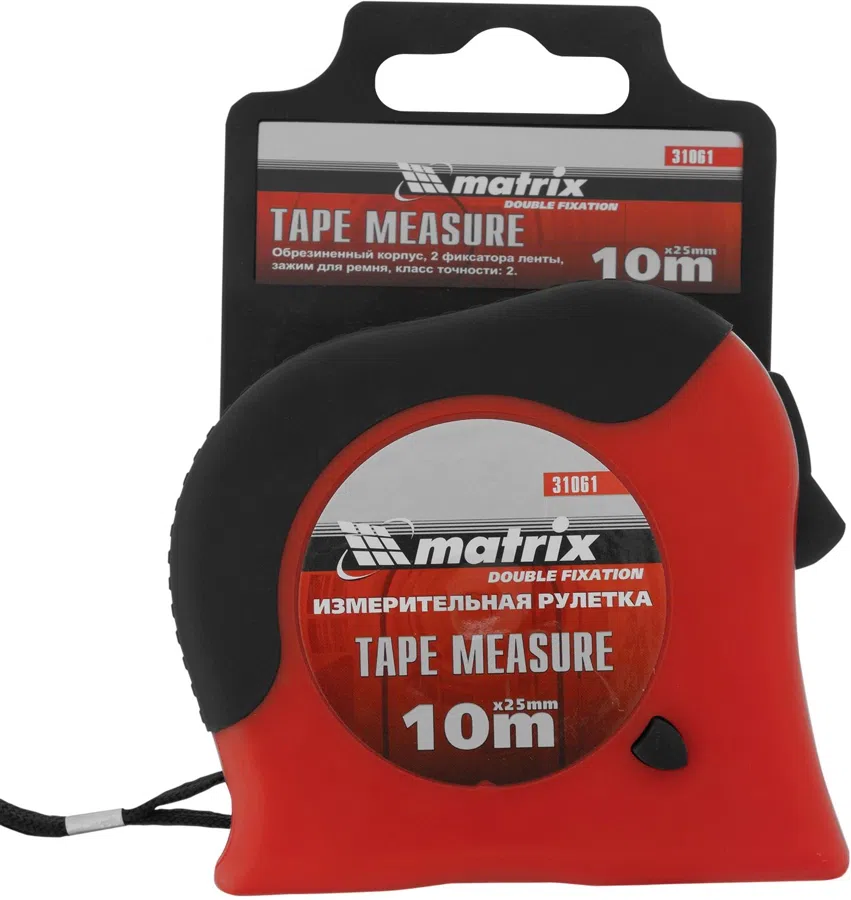 | Описание | Рулетка Double fixation, 10 м х 25 мм, обрезиненный корпус, двойная плавная фиксация// Matrix |