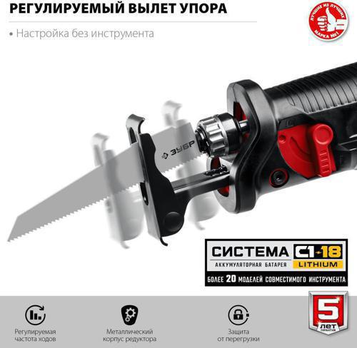 Сабельная пила Зубр СПЛ-185 аккум. 2600ход/мин