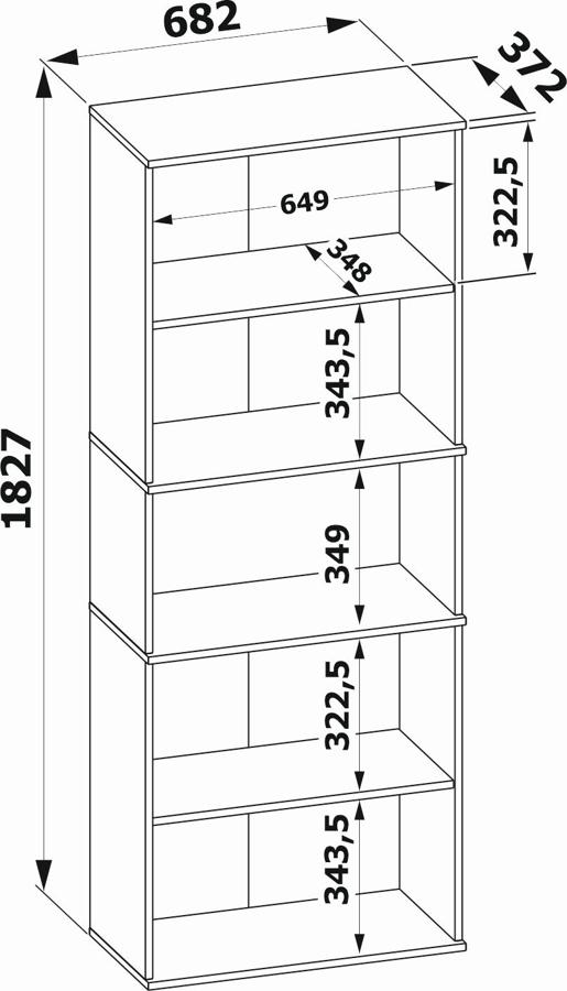 | Особенности | Обратите внимание! Задняя стенка стеллажа с внутренней стороны выполнена из ДВП серого цвета. Две центральные полочки имеет выступ на 20 мм. |