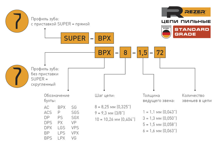 Цепь для цепных пил Rezer PS-9-1,3-63 3/8" 63звен. (03.015.00069)