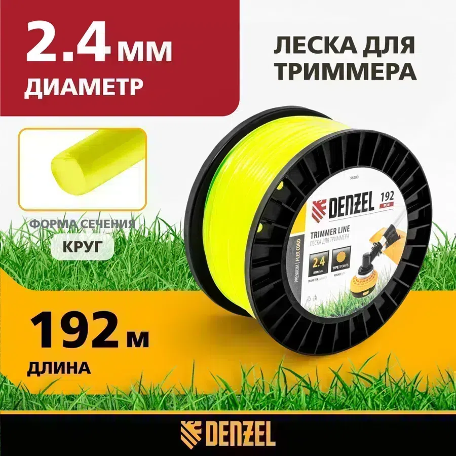 Леска для садовых триммеров Denzel 96280 d=2.4мм L=192м