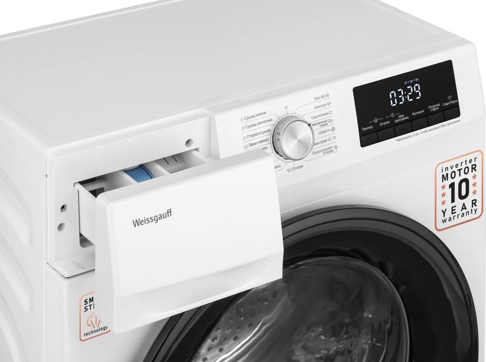 Стиральная машина Weissgauff WMD 6148 DC Inverter Steam класс: A загр.фронтальная макс.:8кг (с сушкой) белый инвертор