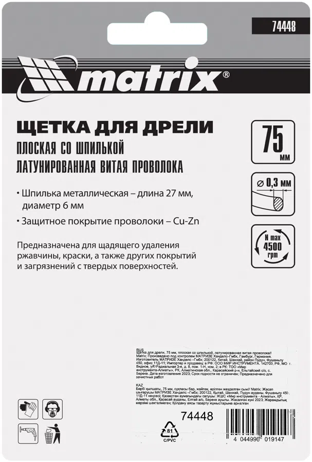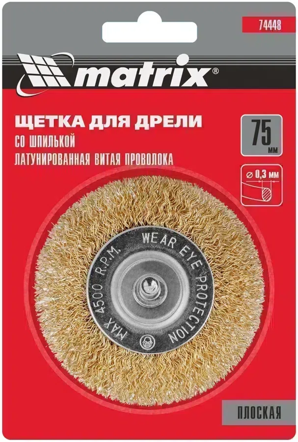 Щетка дисковая Matrix 74448 d=75мм d(посад.)=6мм (дрели)