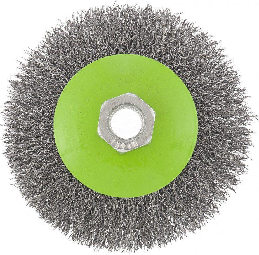 | Описание | Щетка для УШМ «Тарелка» Сибртех 746087, М14, 100 мм, с щетиной из витой проволоки толщиной 0,3 мм, применяется для очистки металлических, деревянных и пластиковых поверхностей от ржавчины, старых лакокрасочных покрытий и загрязнений. |