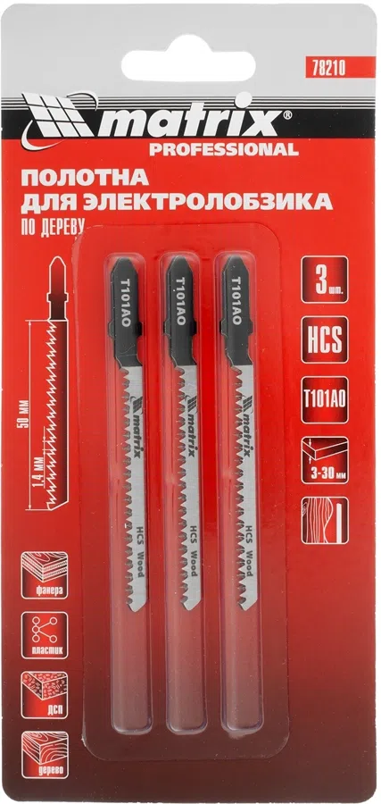 Набор пилок по дереву Matrix 78210 3пред. (лобзики)