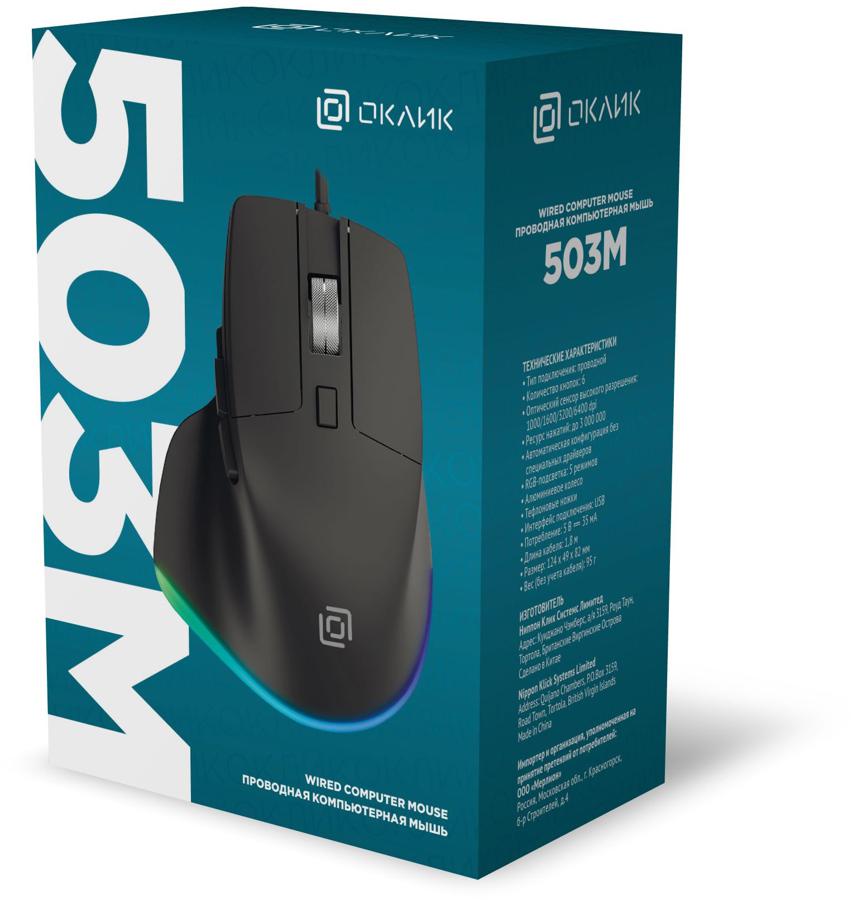 Мышь Оклик 503M черный оптическая 6400dpi silent USB для ноутбука 6but (1885417)