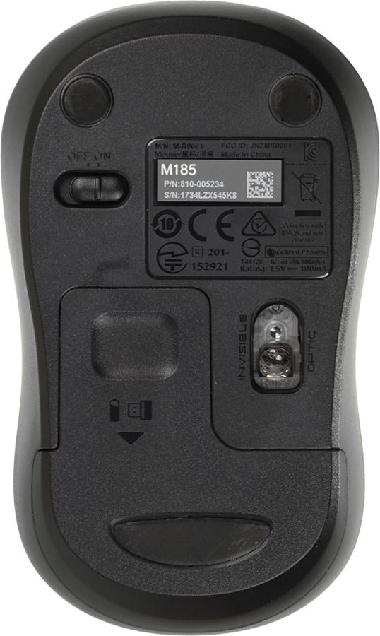 Мышь Logitech M185 черный/серый оптическая 1000dpi беспров. USB для ноутбука 2but (910-002252)
