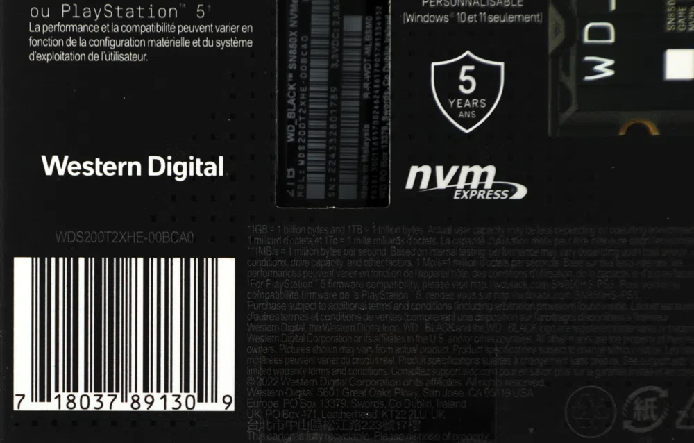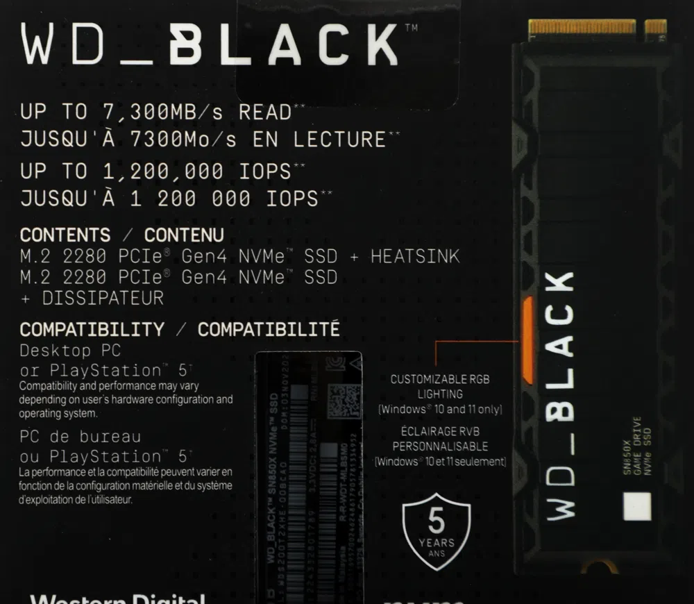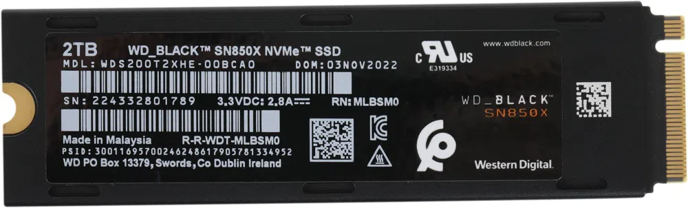 Накопитель SSD WD S PCIe 4.0 x4 2TB WDS200T2XHE Black SN850X M.2 2280