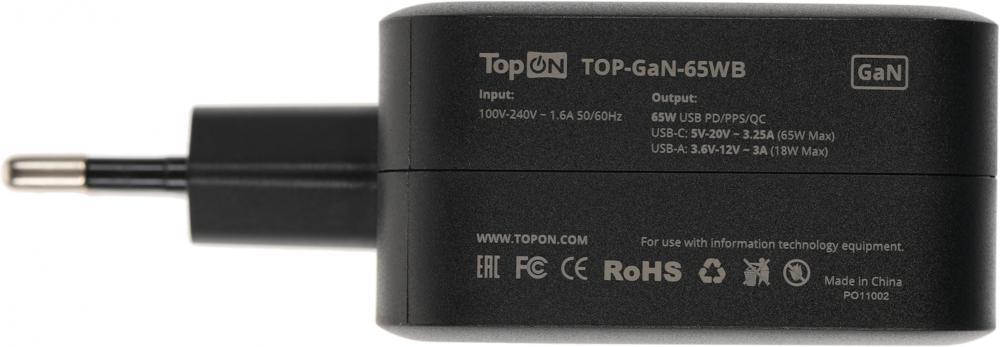 Блок питания TopON TOP-GaN-65WB автоматический 65W 5V-20V 3.25A от бытовой электросети LED индикатор
