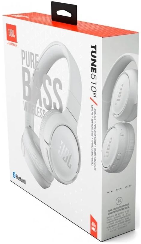 Гарнитура накладные JBL Tune 510BT белый беспроводные bluetooth оголовье (JBLT510BTWHT)