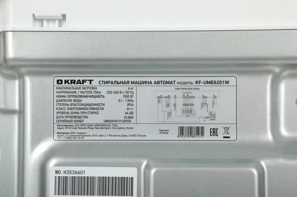 Стиральная машина Kraft KF-UME6201W класс: A+++ загр.вертикальная макс.:6кг белый