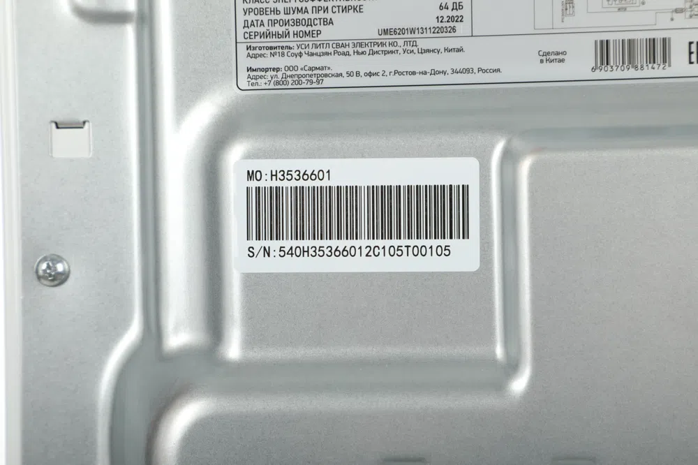 | Уровень шума при стирке | 64 дБ |