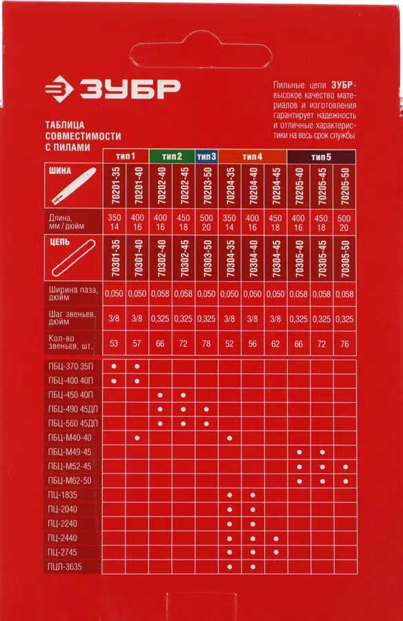Цепь для цепных пил Зубр 70305-45 0.325" 72звен. для ПБЦ-М49-45/М52-45/М62-50