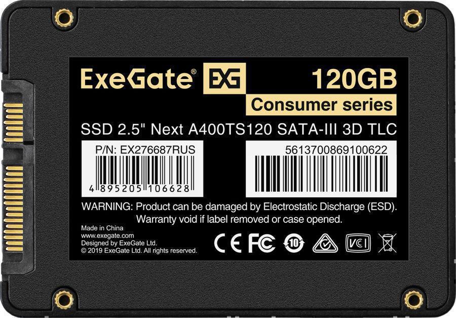 Накопитель SSD Exegate SATA-III 120GB EX276687RUS A400TS120 Consumer 2.5"