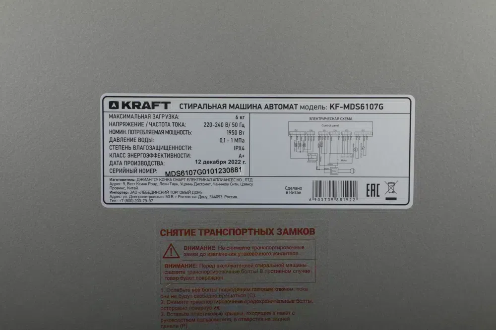 Стиральная машина Kraft KF-MDS6107G класс: A+ загр.фронтальная макс.:6кг серый