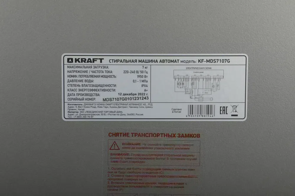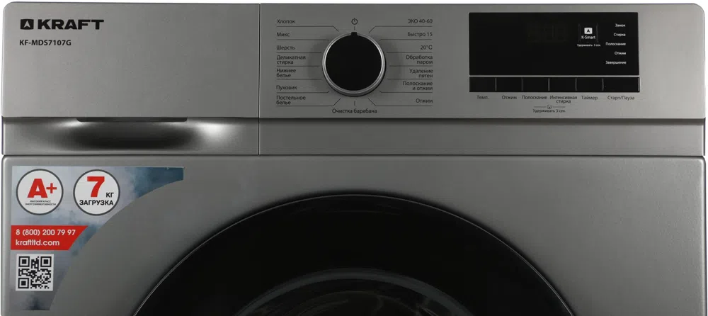 Стиральная машина Kraft KF-MDS7107G класс: A+ загр.фронтальная макс.:7кг серый