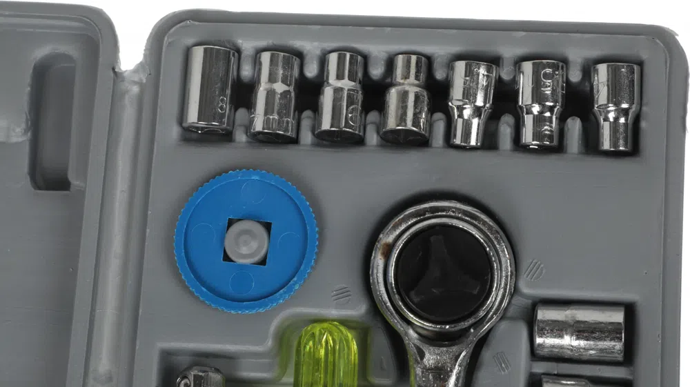 | Дополнительно в наборе, 3 / 8"DR | Вороток дисковыйУдлинитель 70 ммПереходник 3/8" F x 1/4" M |