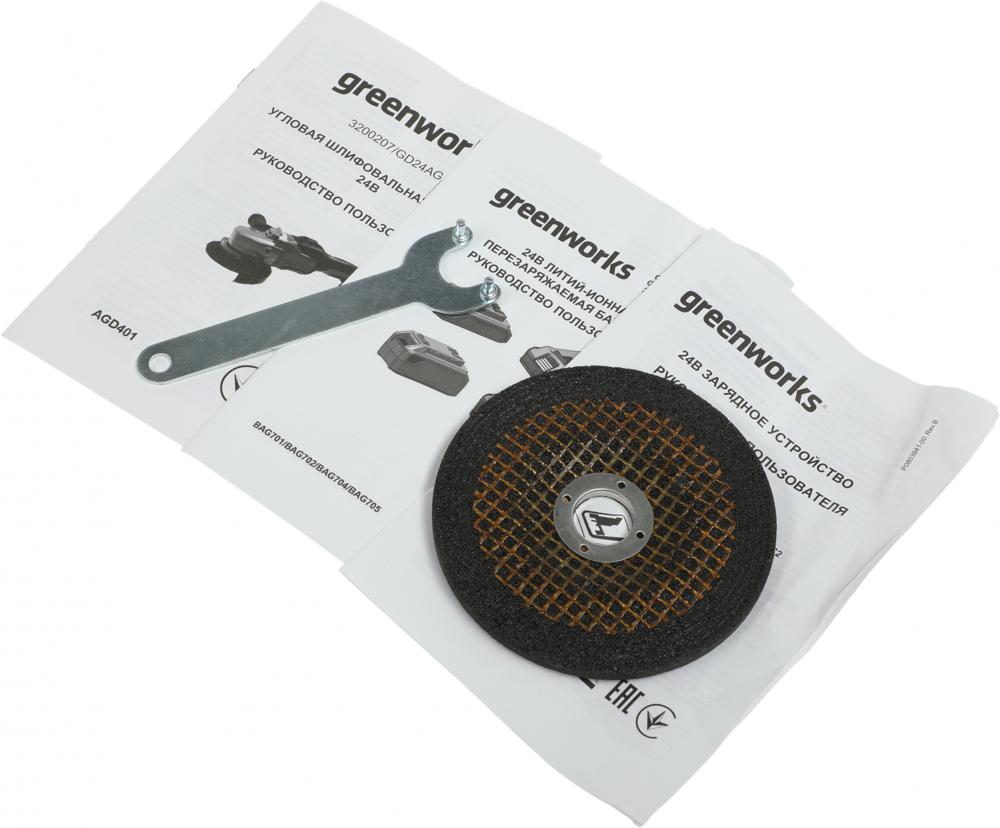 Углошлифовальная машина Greenworks GD24AGK4 10500об/мин рез.шпин.:M14 d=125мм (3200207UB)