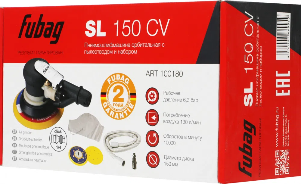 Шлифмашина орбитальная Fubag SL150CV 130л/мин d=150мм черный/белый