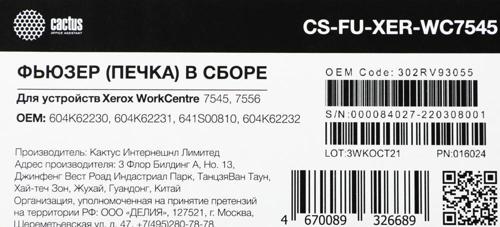 Печка в сборе Cactus CS-FU-XER-WC7545 (604K62230/604K62231/-232/641S00810) (восстановл.) для Xerox WC 7545/7556