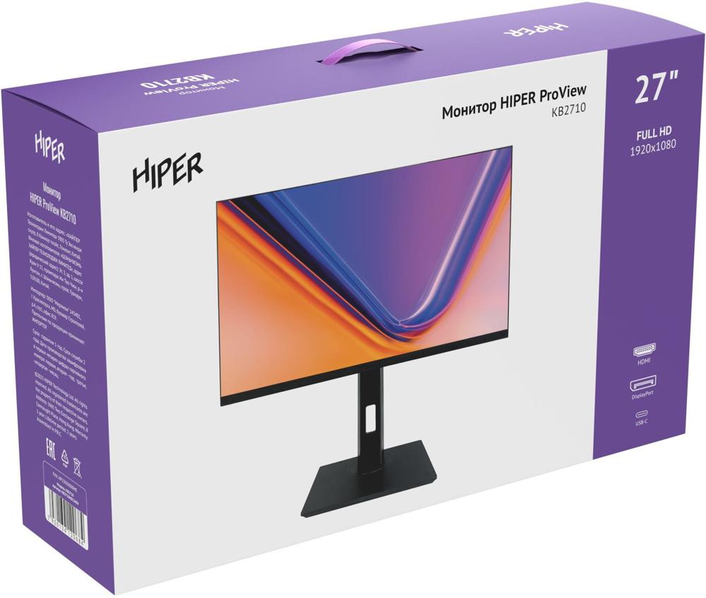 Монитор Hiper 27" ProView KB2710 черный IPS LED 5ms 16:9 HDMI M/M матовая HAS Piv 250cd 178гр/178гр 1920x1080 75Hz FreeSync DP FHD USB 4.5кг