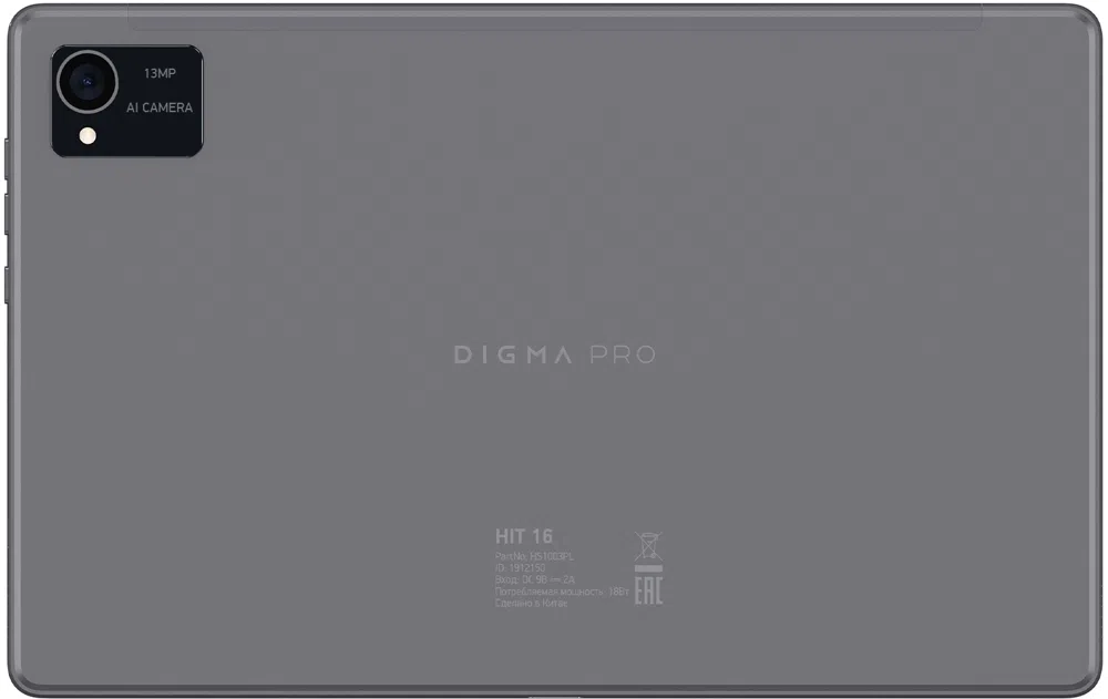 Планшет Digma Pro HIT 16 T616 (2.0) 8C RAM8Gb ROM128Gb 10.4" IPS 2000x1200 4G Android 13 серый 13Mpix 5Mpix BT WiFi microSD 1Tb 7000mAh