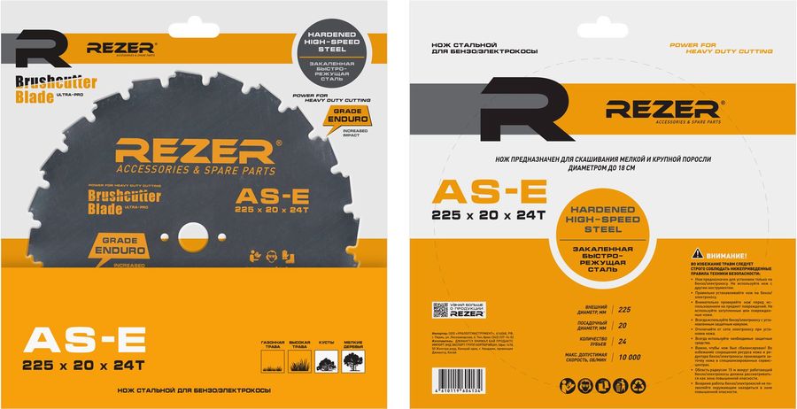 Нож для садовых триммеров Rezer AS-E 225 x 20 x 24T ENDURO L=225мм (03.010.00044)
