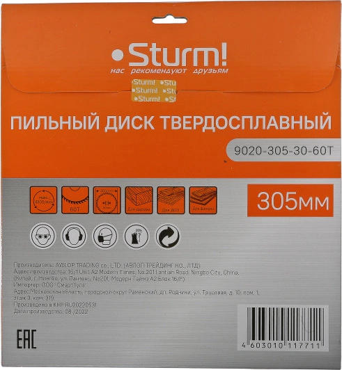Диск пильный Sturm! 9020-305-30-60T d=305мм d(посад.)=30мм (торцовочные пилы)