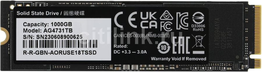 Накопитель SSD Gigabyte PCIe 4.0 x4 1000GB AG4731TB Aorus Gen4 7300 M.2 2280