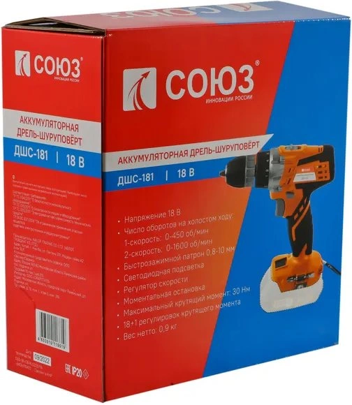 Дрель-шуруповерт Союз ДШС-181 аккум. патрон:быстрозажимной