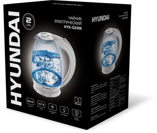 Чайник электрический Hyundai HYK-G2409 1.7л. 2200Вт белый/серебристый корпус: стекло/пластик