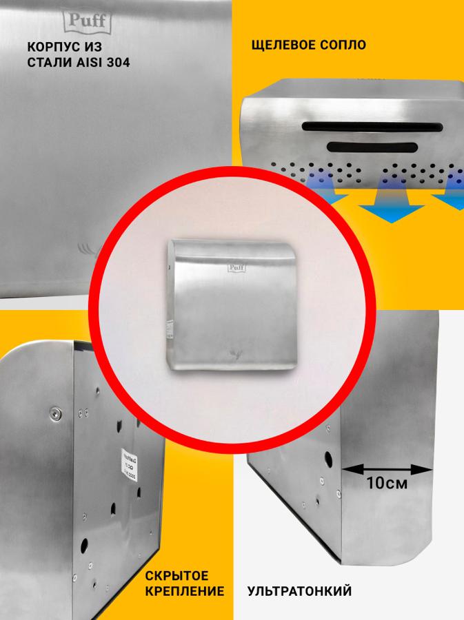 | Особенности | Бережное высушивание - температура поток от 20 до 40С.Щелевое строение сопла.Два мембранных фильтра для защиты мотора от частиц пыли. |