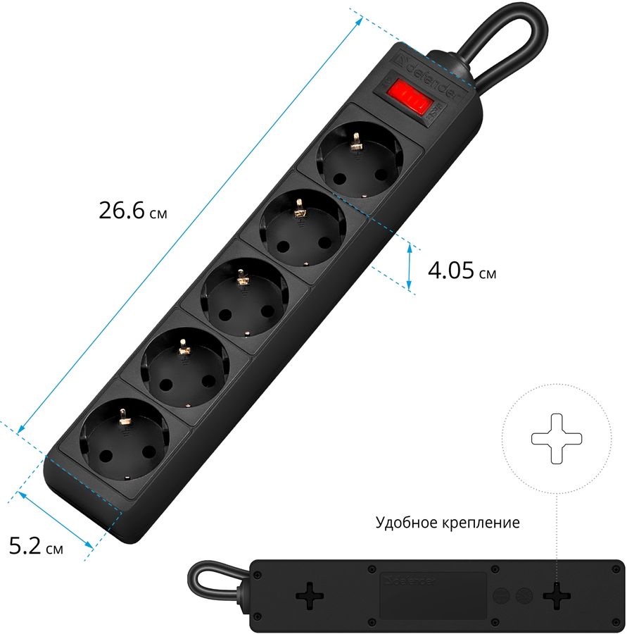 Сетевой фильтр Defender ES 3м (5 розеток) черный (коробка)