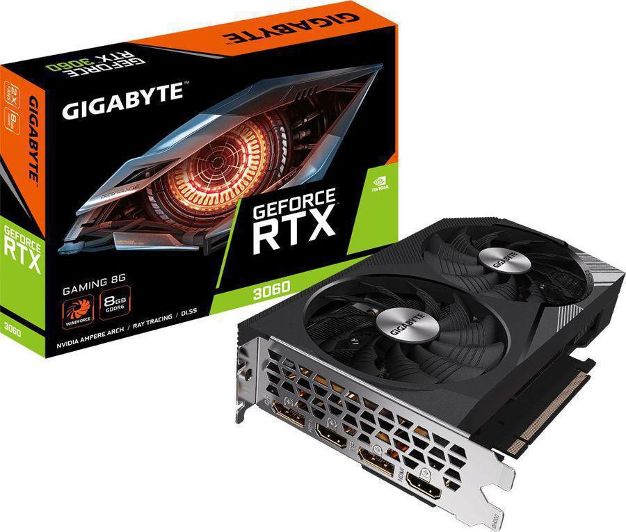 Видеокарта Gigabyte PCI-E 4.0 GV-N3060GAMING-8GD NVIDIA GeForce RTX 3060 8Gb 128bit GDDR6 1777/15000 HDMIx2 DPx2 HDCP Ret