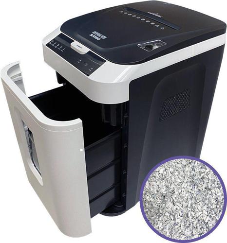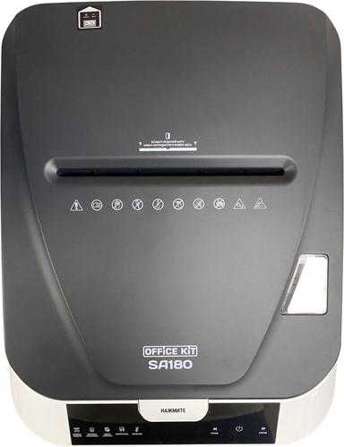 Шредер Office Kit SA180 1,9x12 белый/черный с автоподачей (секр.P-5) фрагменты 14лист. 35лтр. скрепки скобы пл.карты