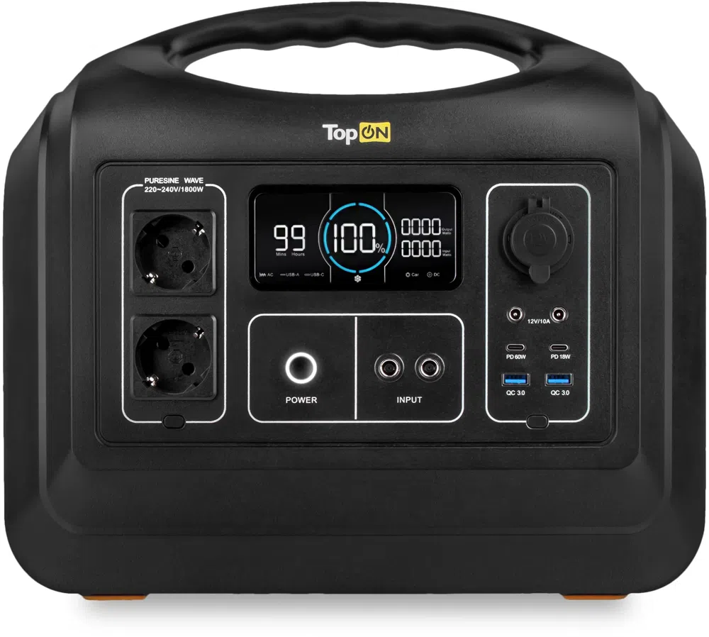 | Описание | LiFePO4 ячейки, сохраняющие заряд при отрицательных температурах. Выходная мощность 1800W, пиковая 4000W. 2 розетки переменного тока. Светодиодный фонарь 700 lm. Зарядка от сетевого блока питания, солнечной панели или автомобильной розетки. Корпус из ударопрочного и огнестойкого ABS пластика. |