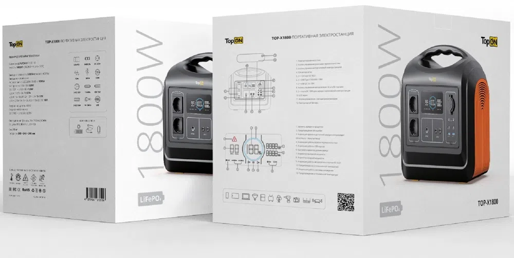 | Особенности | LiFePO4 ячейки суммарной емкостью 1488Wh (465000mAh, при 3.2V). Выходная мощность 1800W, пиковая 4000W. 9 выходных интерфейсов для различной техники. Авторозетка 120W и 2 универсальных 12V DC 5521. 2 USB Type-C PD 60W/18W и 2 независимых USB QC 3.0 18W. Удобный цветной 5" LCD экран с подсветкой. |