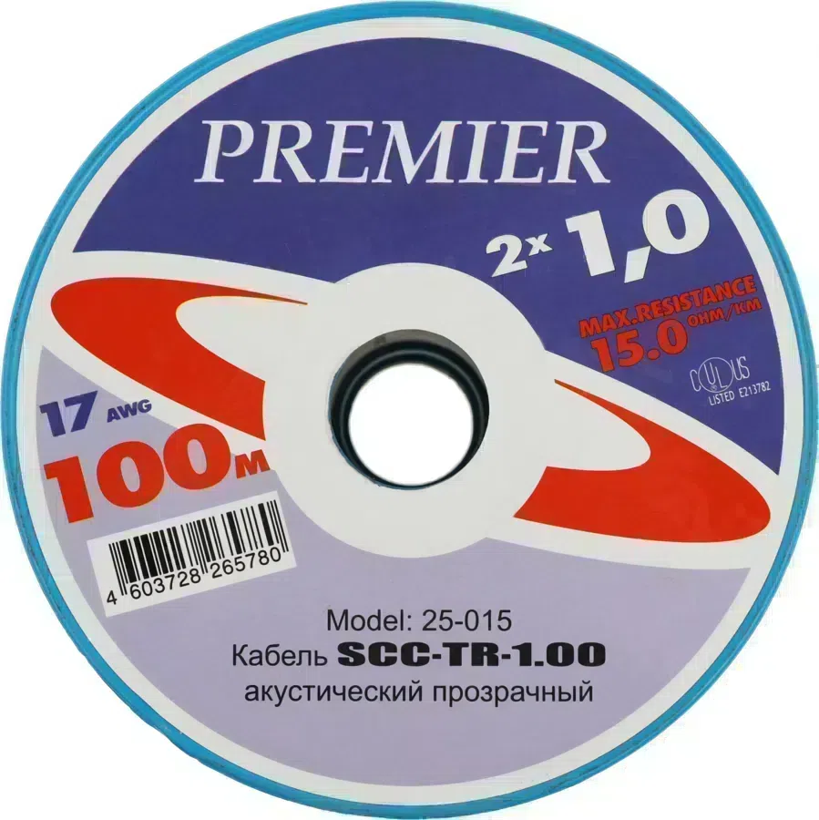 Кабель соединительный акустический Premier SCC-TR CCA 100м. прозрачный (25-015 100)