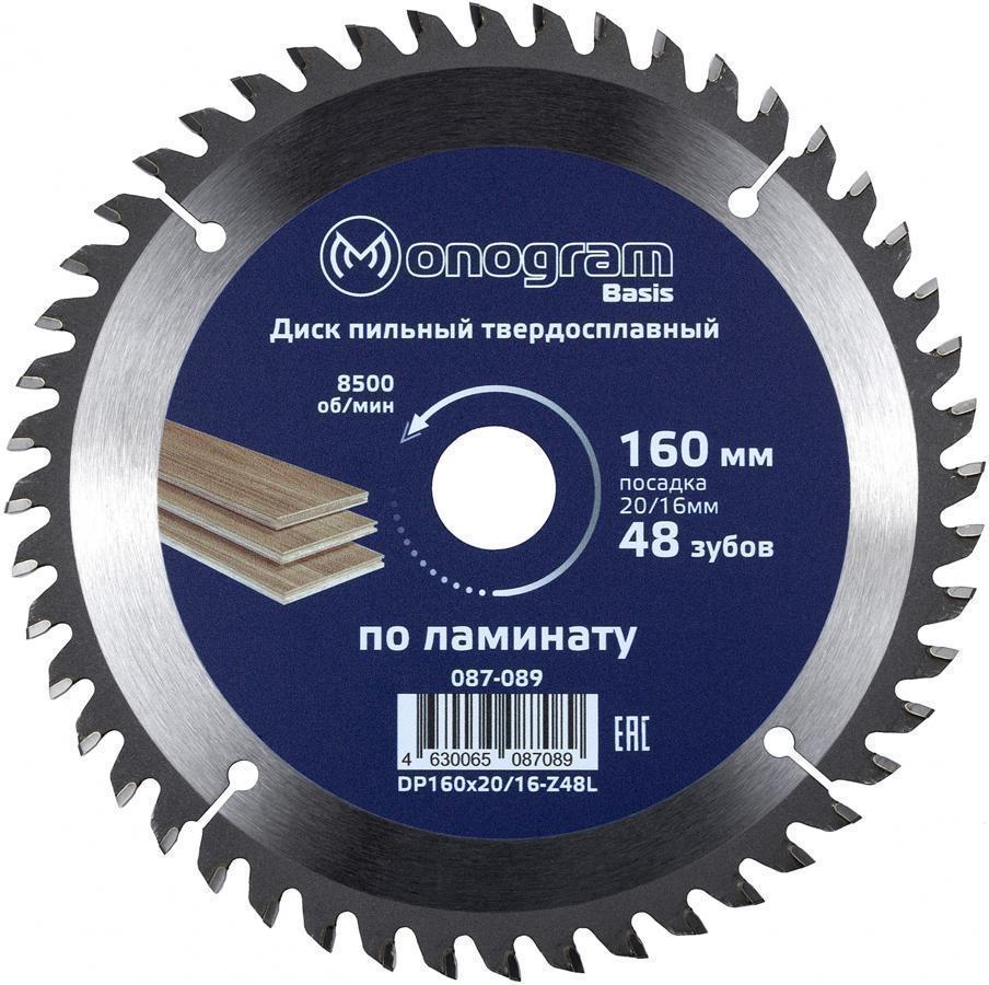 Диск пильный по дер. Monogram 087-089 d=160мм d(посад.)=20мм (циркулярные пилы) (упак.:1шт)