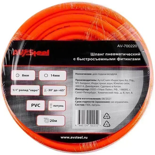Шланг для пневмоинструмента Av Steel AV-700220 20м оранжевый