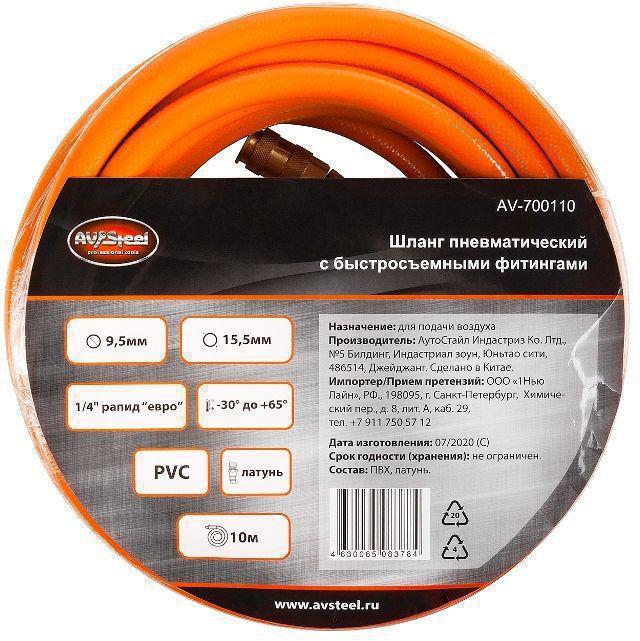Шланг для пневмоинструмента Av Steel AV-700110 10м оранжевый