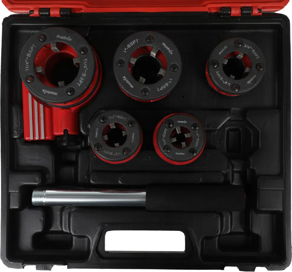 | Другие инструменты / принадлежности | Трубные клуппы 1/2", 1/4", 3/4", 1", 1 1/4",Плашкодержатель с трещоткой,Сборная рукоятка. |