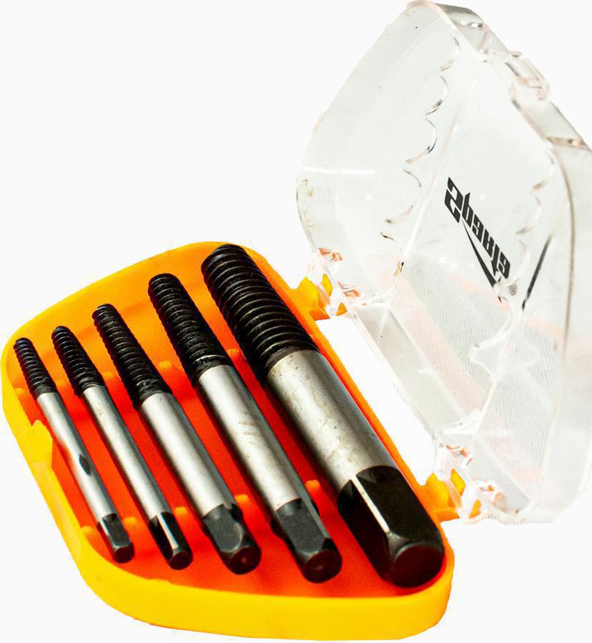 | Особенности | Набор экстракторов, 5 шт.: №1 (3-6 мм.), № 2 (6-8 мм.), № 3 (8-11 мм.), № 4 (11-14 мм.), № 5 (14-18 мм.). |