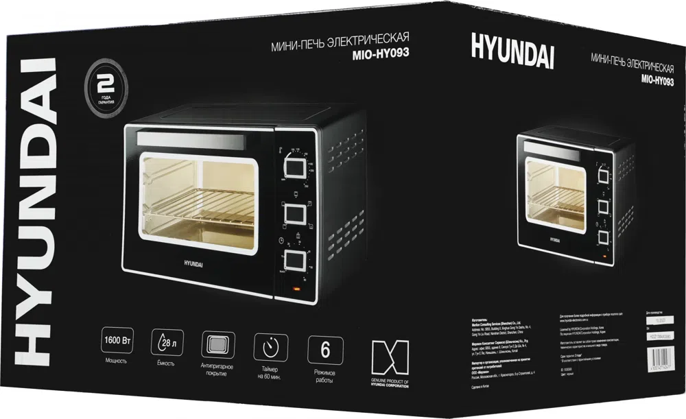 Мини-печь Hyundai MIO-HY093 28л. 1600Вт черный