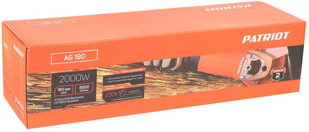 Углошлифовальная машина Patriot AG 190 2000Вт 8500об/мин рез.шпин.:M14 d=180мм (110301180)